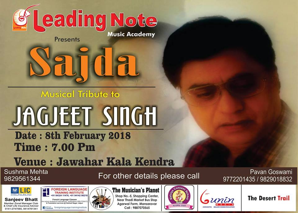 On the birth anniversary of Ghazal King Jagjeet Singh Leading Note Music Academy's artist along with top artist of city will hive him musical tribute.